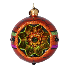 Ozdoba, która przyciąga spojrzenie niczym tajemnicze oko czarownicy. Fiolet, zieleń i pomarańcz tworzą niezwykłą, hipnotyzującą kompozycję barw, a mieniący się środek rozświetla całość niczym zaczarowany kryształ.
