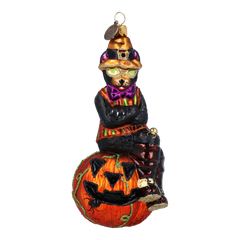 Ręcznie malowana: każdy szczegół – od złotych oczu po misternie zdobioną dynię – powstaje z dbałością o najmniejszy detal. Pomarańcz i fiolet tworzą klasyczne halloweenowe połączenie barw, które doskonale prezentuje się na tle choinki lub kominka.