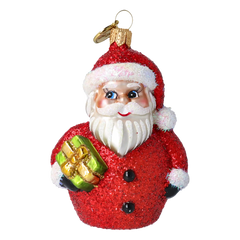 Mały Mikołajek z prezentem Szklana Ozdoba