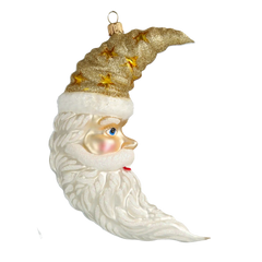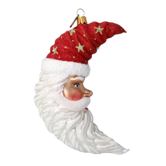 Wyjątkowe detale: Każdy aspekt tej ozdoby jest wykonany z najwyższą starannością. Księżycowy profil Mikołaja, z delikatnymi, rzeźbionymi rysami twarzy i lśniącą czapką, emanuje ciepłem i elegancją, wprowadzając świąteczny nastrój do każdego pomieszczenia.