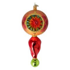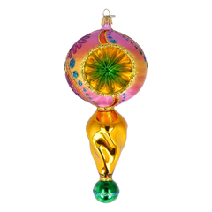 Zachwycająca, ręcznie malowana szklana ozdoba w bogatych odcieniach szmaragdowej zieleni i głębokiego błękitu. Centralnym punktem jest promienny reflektor, który pięknie łapie światło, a całość uzupełniają migoczące akcenty oraz eleganckie złote zdobienia. To doskonały dodatek do każdej choinki, wnoszący nutę ponadczasowego uroku i świątecznego blasku. Ze względu na ręczne wykonanie każda ozdoba może nieznacznie różnić się od pozostałych, co podkreśla jej wyjątkowość i niepowtarzalny charakter. Kolory mogą się nieznacznie różnić w zależności od zdjęć i ustawień różnych ekranów.