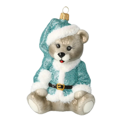Uroczy, ręcznie malowany miś w czerwono-czapkowym nakryciu głowy i ozdobnym płaszczu. Zachwycająca ozdoba, która wnosi ciepło i odrobinę baśniowej magii na Twoją choinkę.