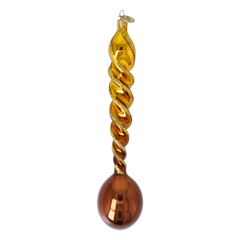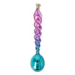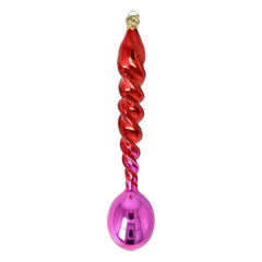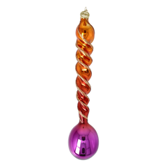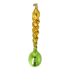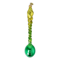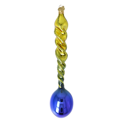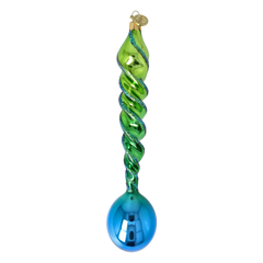 Przykuwająca wzrok szklana ozdoba, łącząca harmonijnie szmaragdową zieleń z głębokim błękitem. Spiralny wzór jest obrysowany migoczącym niebieskim brokatem, podkreślającym jego płynny ruch. Błyszcząca niebieska kropla u dołu dodaje głębi oraz chłodnego, wyrafinowanego wykończenia.