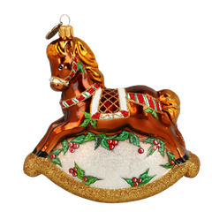 Wejdź w nostalgiczną świąteczną baśń z Złotym Konikiem na Biegunach. Ta ręcznie dmuchana szklana ozdoba oddaje urok klasycznej zabawki konika, z białym korpusem, migoczącymi złotymi detalami oraz bogatym czerwonym siodłem. Błyszcząca podstawa na biegunach ozdobiona jest świątecznymi gwiazdami betlejemskimi, dodając magicznego akcentu bożonarodzeniowej tradycji. Ponadczasowy element, który wnosi radość, wdzięk i odrobinę dziecięcej magii na każde drzewko.