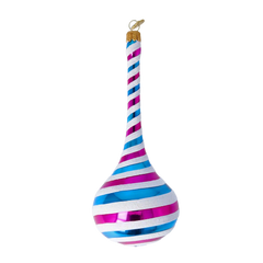 Emanując ciepłem i świątecznym urokiem, ta kroplowata ozdoba zdobiona jest wijącymi się pasami migoczącego białego brokatu, głębokiej czerwieni oraz złocistych odcieni. Skręcony wzór przypominający laski cukrowe przywodzi na myśl przytulność grzanego wina i cynamonowych smakołyków, a jej błyszczące wykończenie dodaje wyrafinowanego blasku. Doskonały dodatek zarówno do klasycznych, jak i nowoczesnych świątecznych dekoracji.